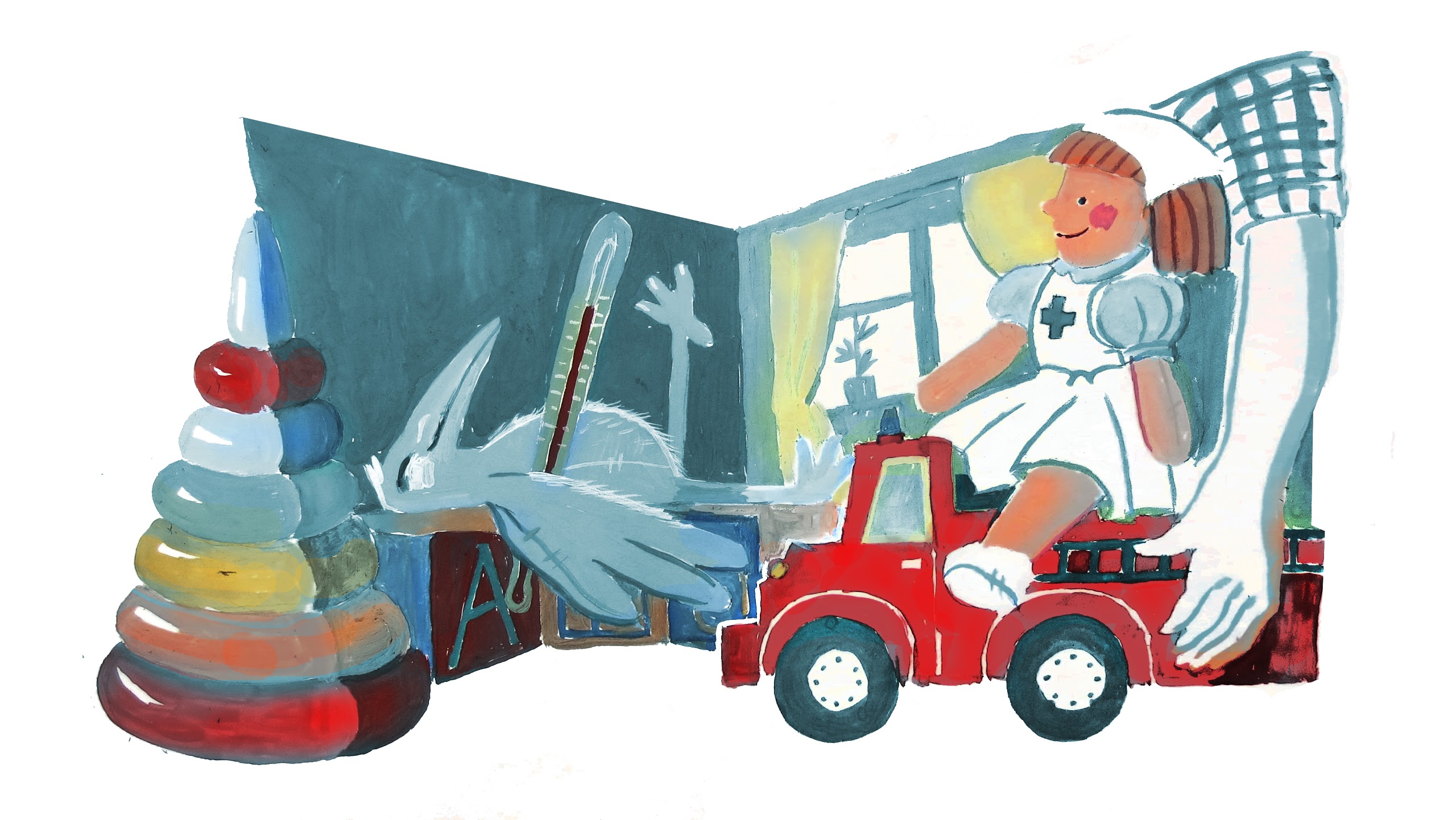 Мой четырехлетний сын любит играть в больницу, но почему-то не любит все эти больничные игрушки — они ему не нужны, чтобы представить себя врачом. Он предпочитает поговорить.