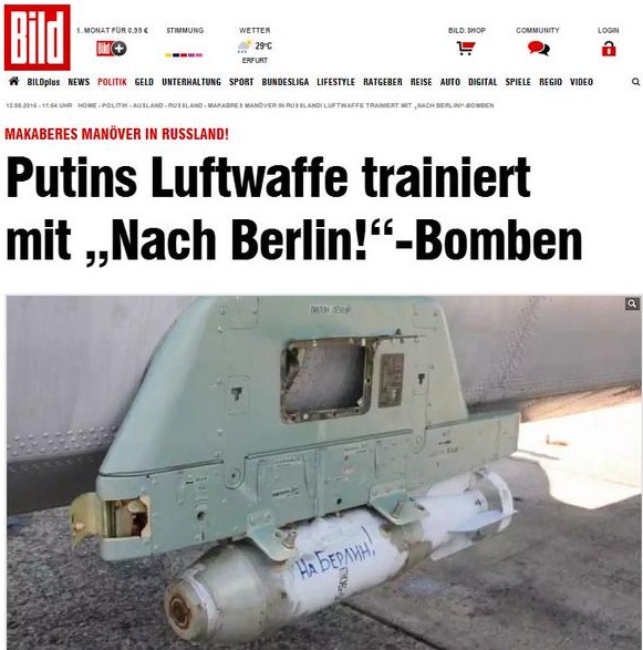 Остается порадоваться за редакторов Bild, что они не видели наклеек «Можем повторить» на джипах россиян.