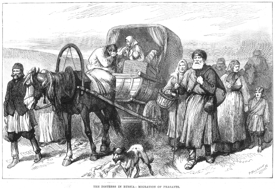 Россия, голод, 1891. Миграция крестьян. Гравюра из британской газеты