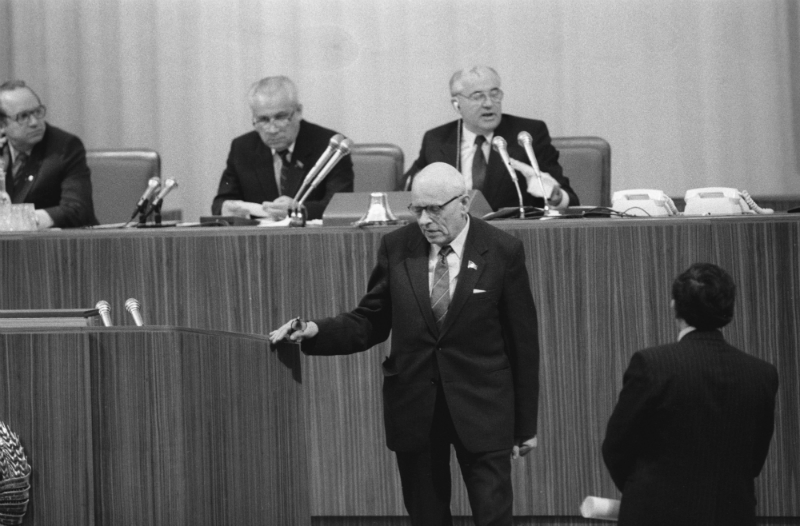 Народный депутат СССР, лауреат Нобелевской премии мира, академик Андрей Дмитриевич Сахаров (в центре) на заседании I съезда народных депутатов СССР, 1989 годФото: Борис Кауфман/РИА Новости