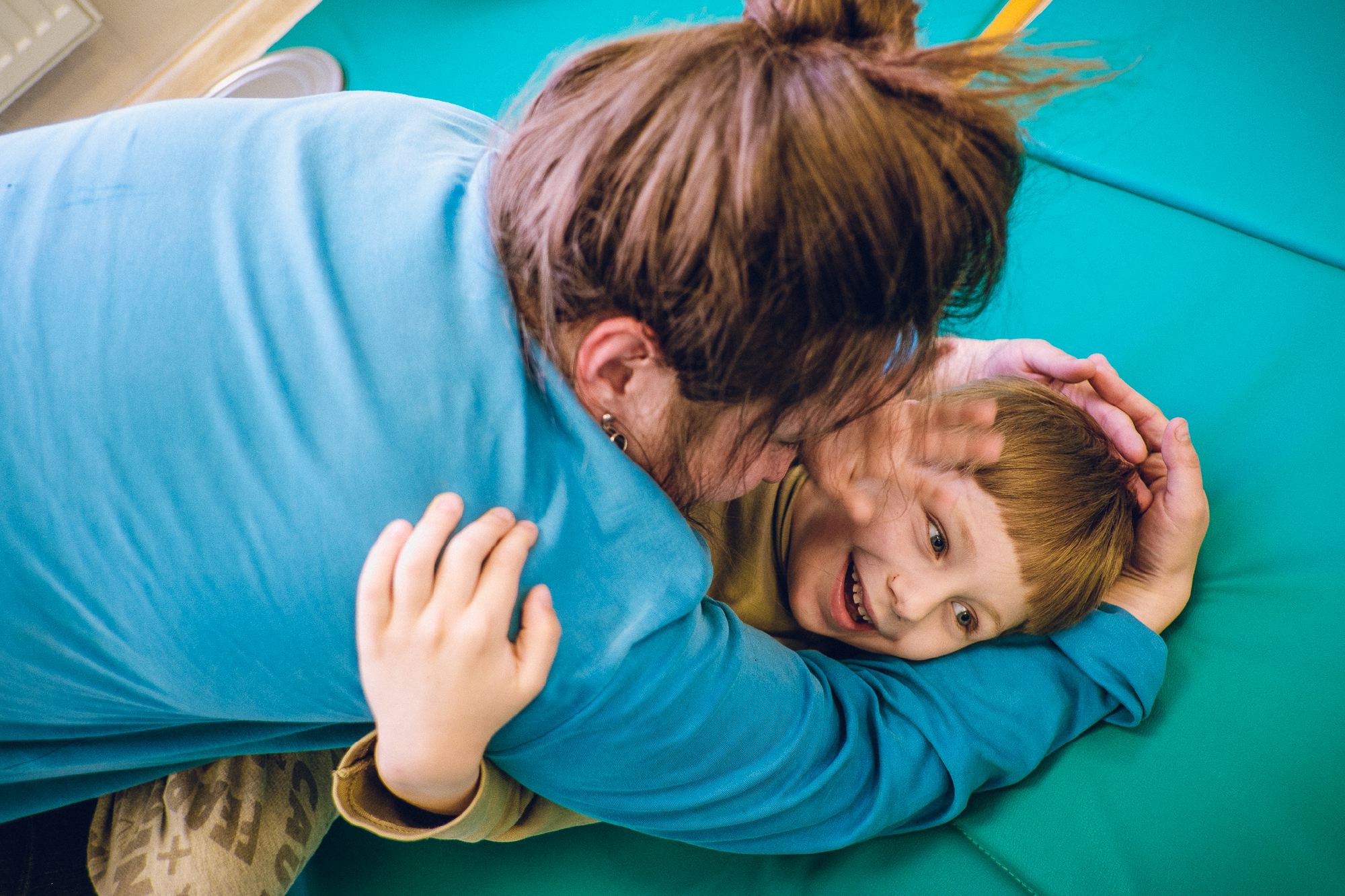 Наталья с Ваней на занятии по игротерапии. В игровой форме Ваня учится общаться. Из-за проблем в отделении ГБО Ваня не смог посещать барокамеруФото: Валерий Зайцев для ТД