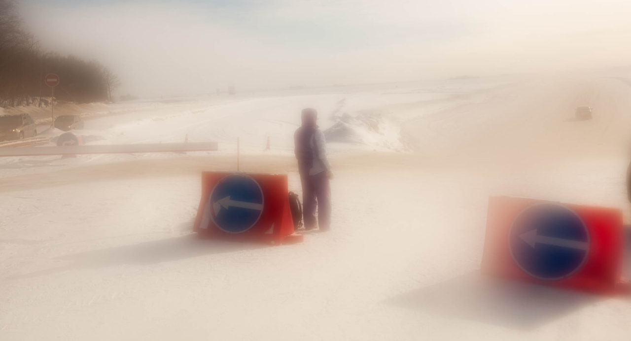 С Аракчинского шоссе почти незаметный съезд между домами под крошечную вывеску «Ледовая переправа. Круглосуточно». Не знаешь — не найдешь. Съезжаю и сразу попадаю в очередь из автомобилей к окошку в бытовке и шлагбаума. Проезд платный — 120 рублей в одну сторону. Пока стою, читаю правила: приоткрыть дверь, соблюдать скорость, дистанцию. Я отстегиваю ремень безопасности и медленно и аккуратно сползаю по крутому спуску с берега на лед Волги. Дверь приоткрывать не хочется. Очень уж холодно. Выключаю музыку и прислушиваюсь, не слышно ли потрескивания льда. На лед я выезжаю первый раз, и все мои познания о ледовых переправах из старых документальных лент про ленинградскую «Дорогу жизни» через Ладогу и современных картинок из интернета, на которых обязательно кто-то на машине проваливается под лед.